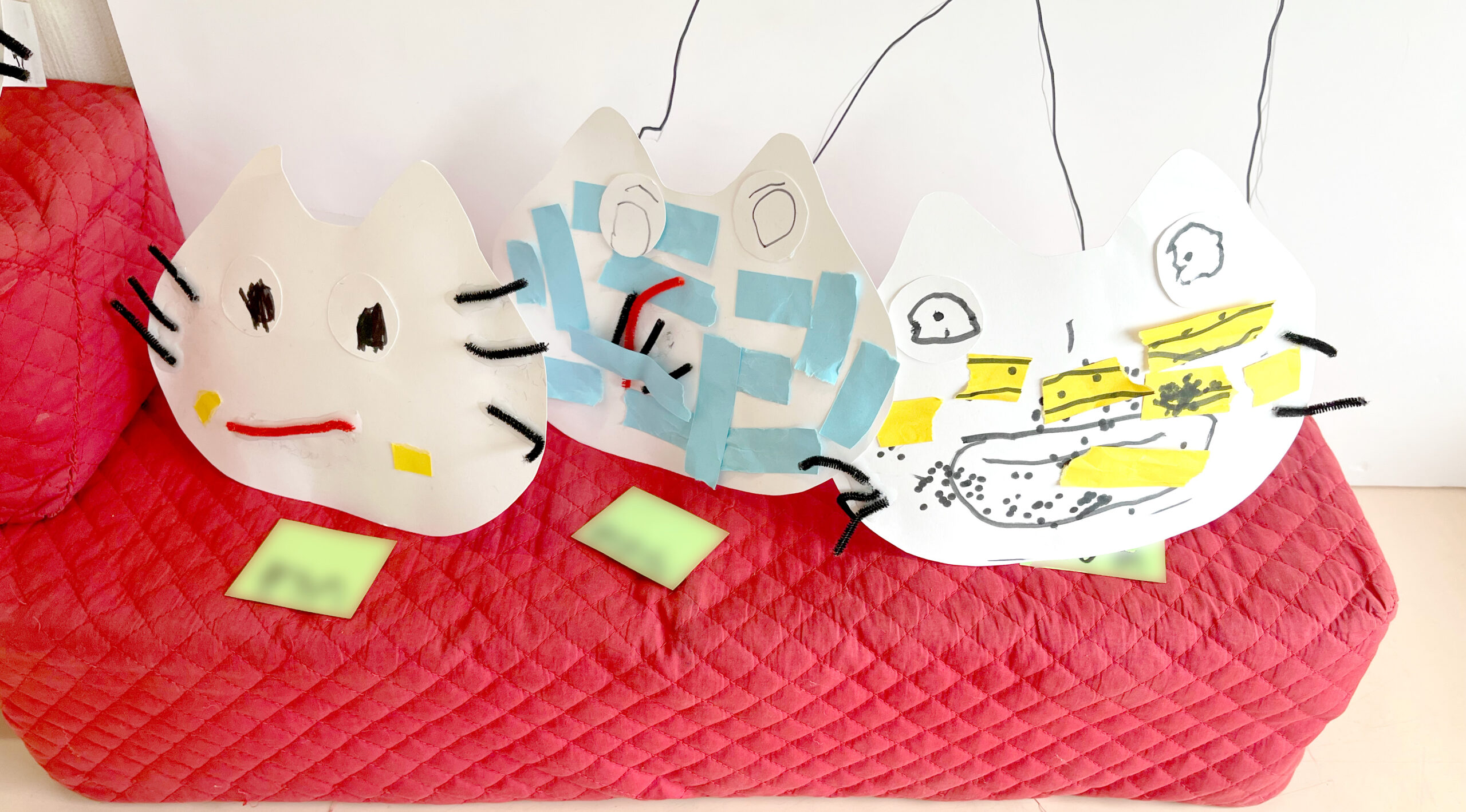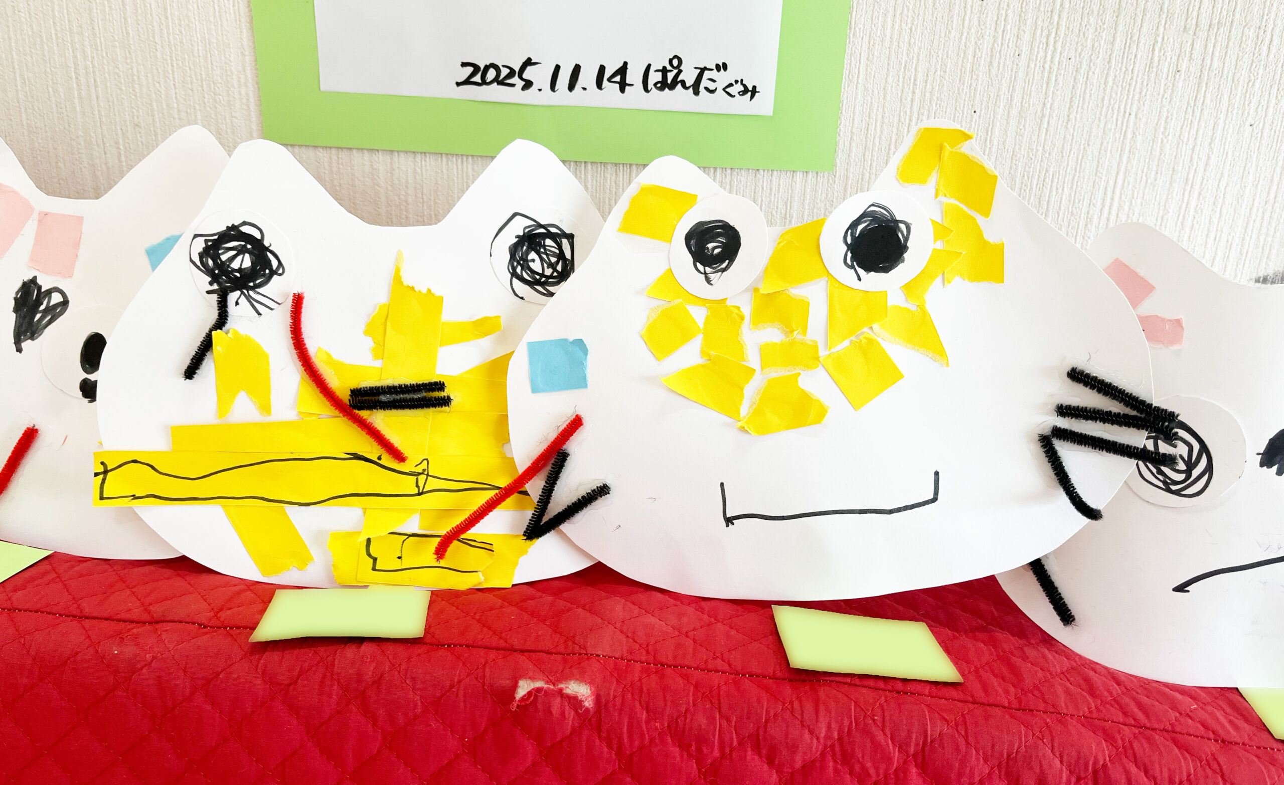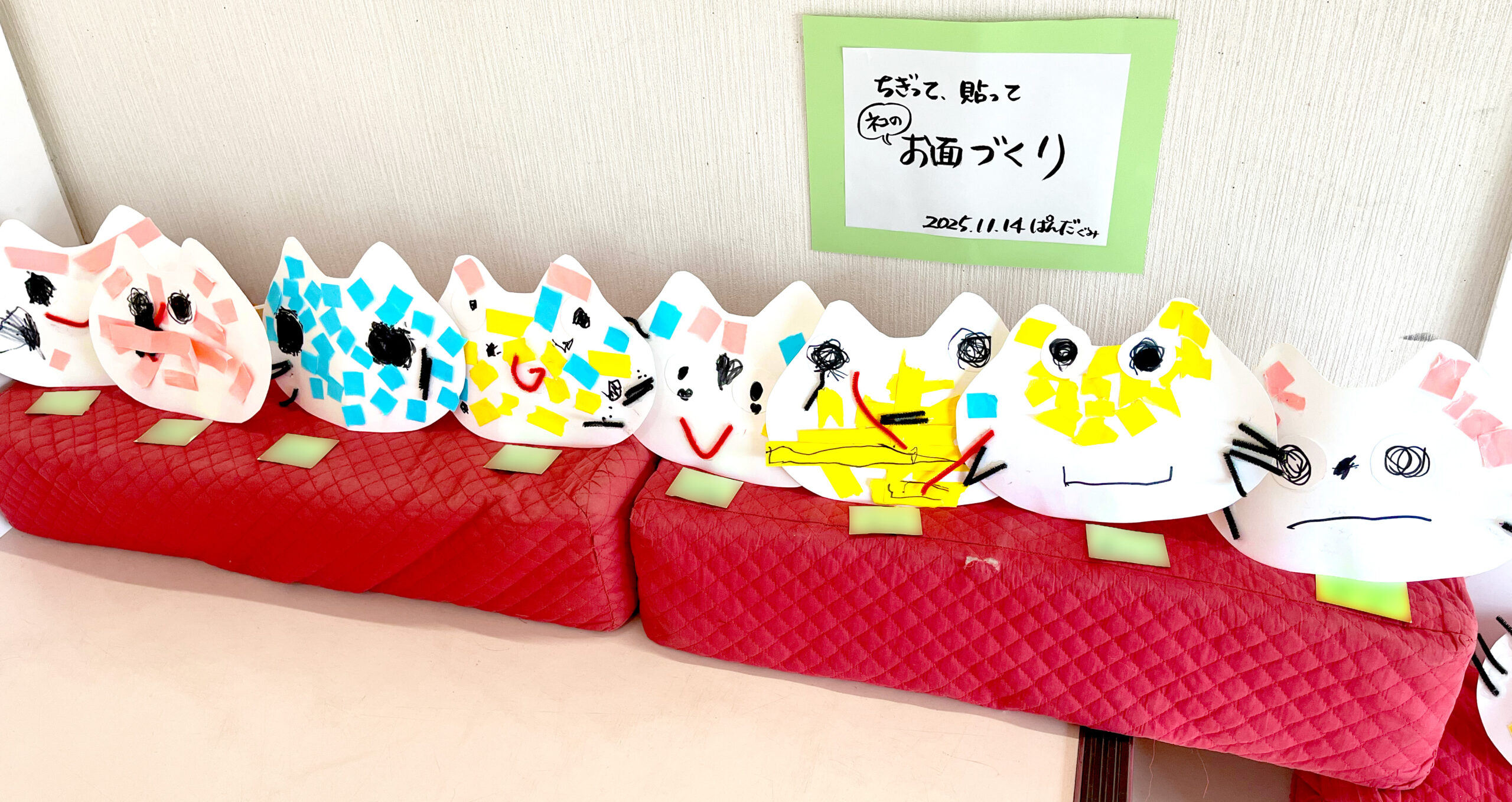 ぺたぺた貼って、猫のお面をつくりました。