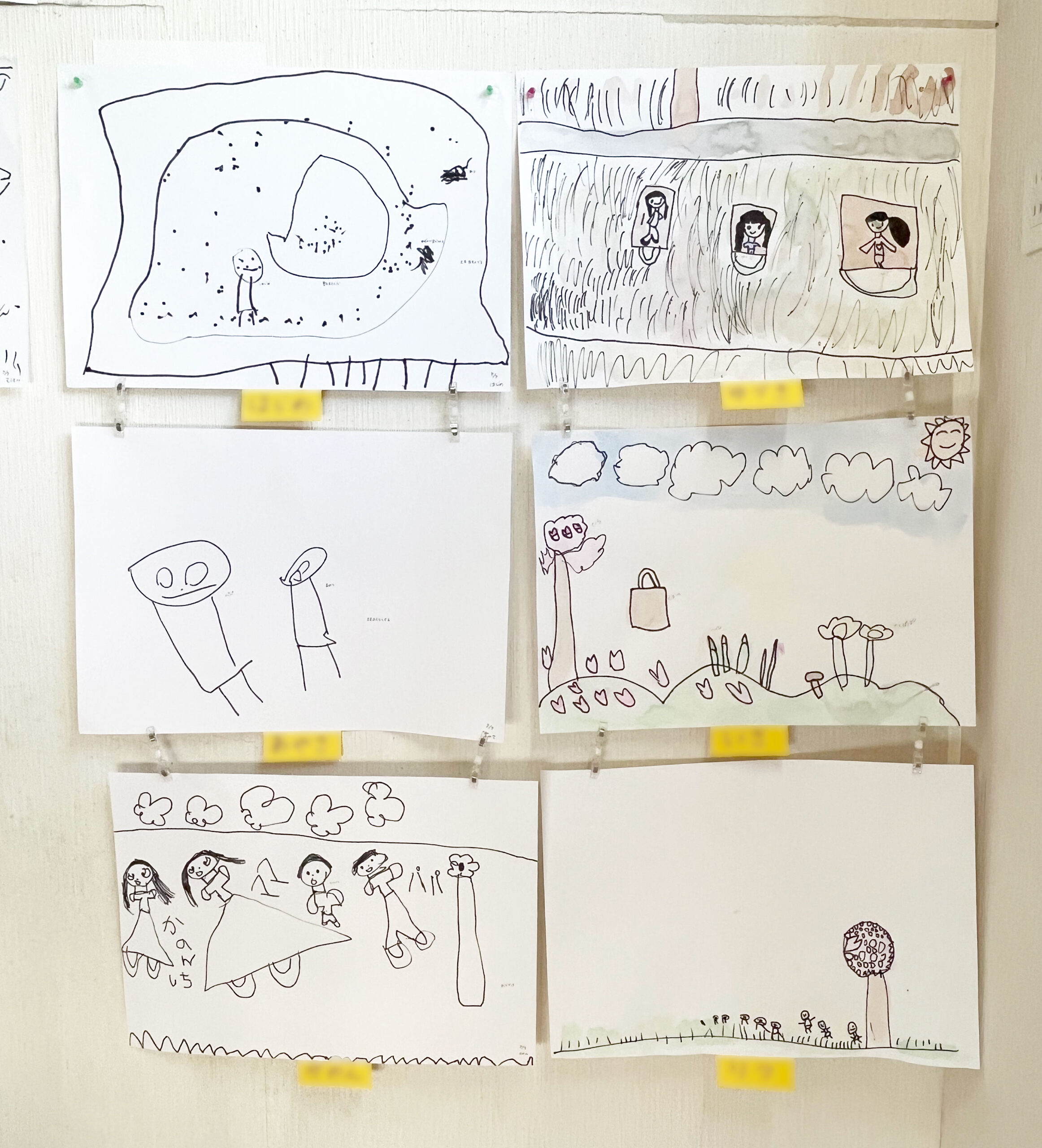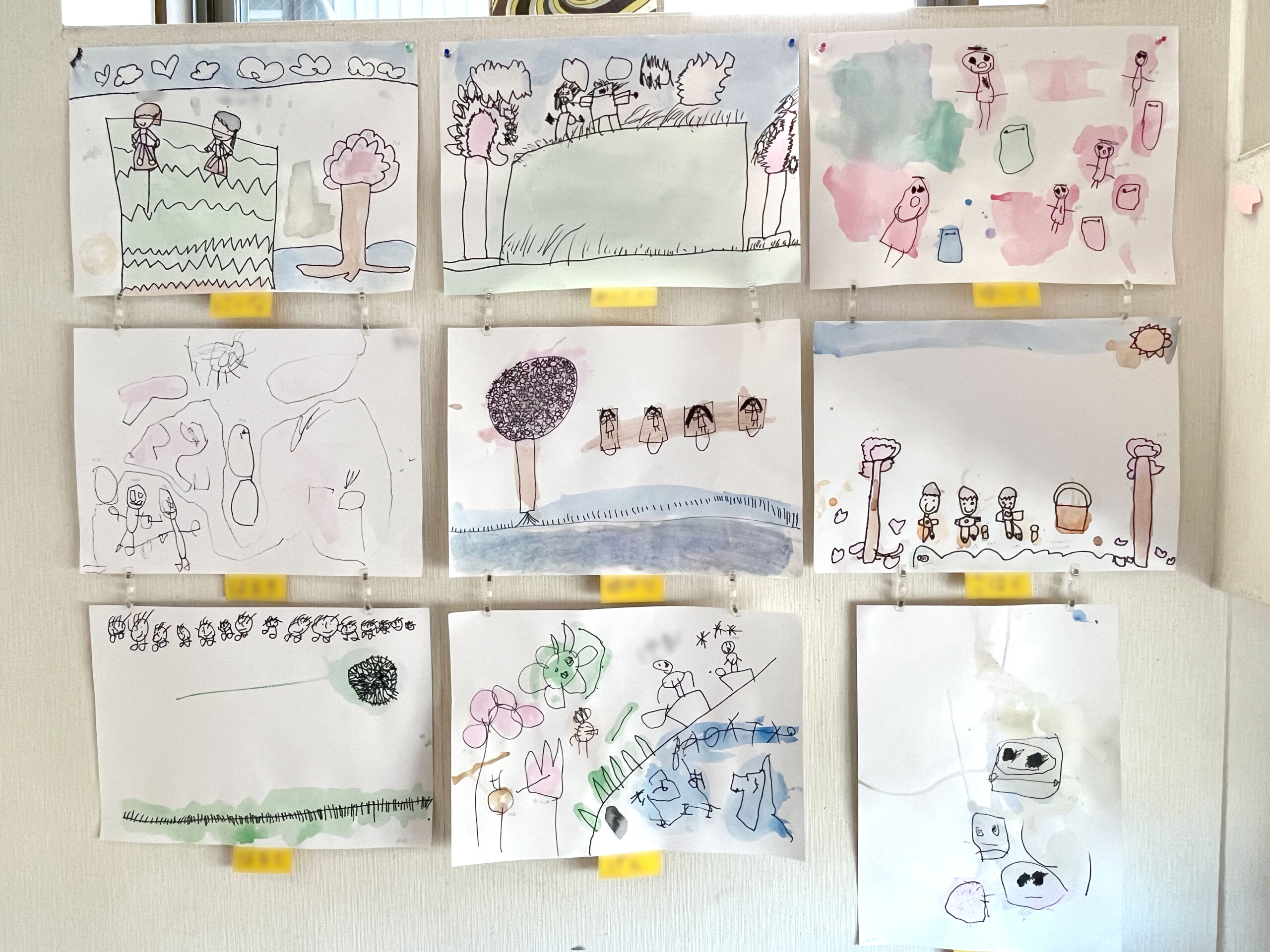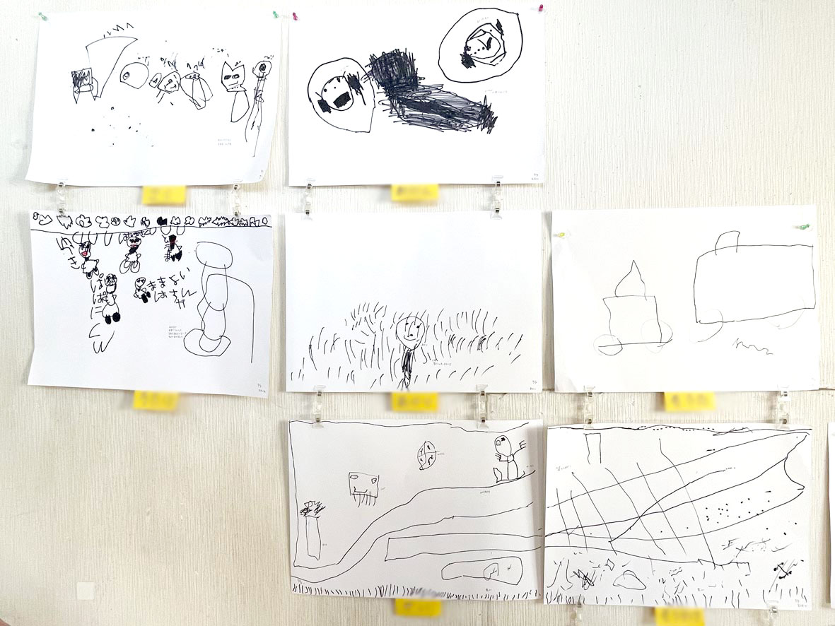 ペンや絵の具を使って、楽しかった土手すべりを思い出しておえかき!のびのび、楽しく描きました。