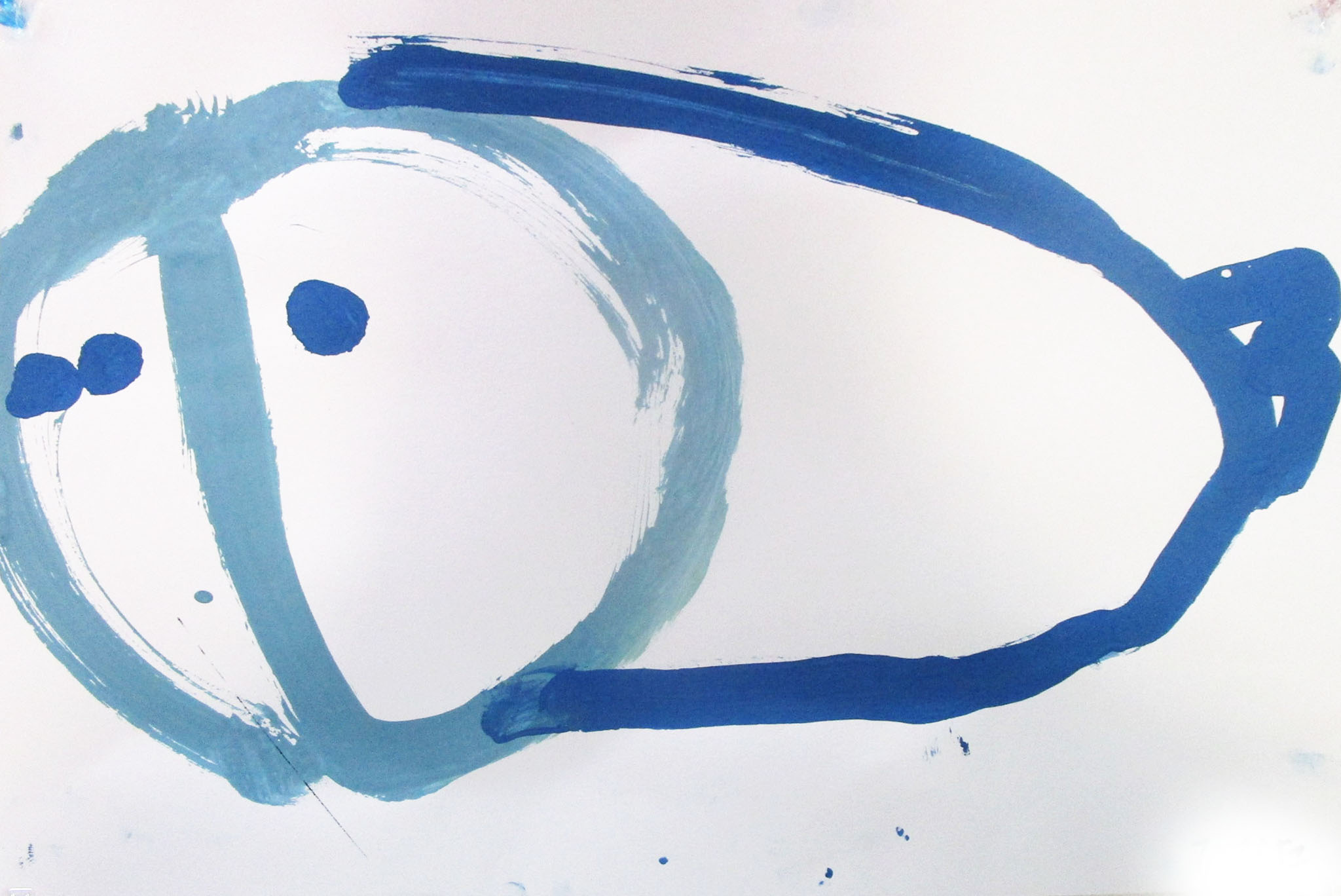 ますをつかまえた後は、早速ますの絵を描きました。プールの中で元気に泳ぎ回るますたちをダイナミックに描きました。