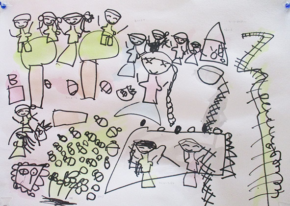 楽しい気持ちの表れのように、のびのびとペンを走らせる子どもたち。らいおんやかぶに描いたものを見立てる子もいました。