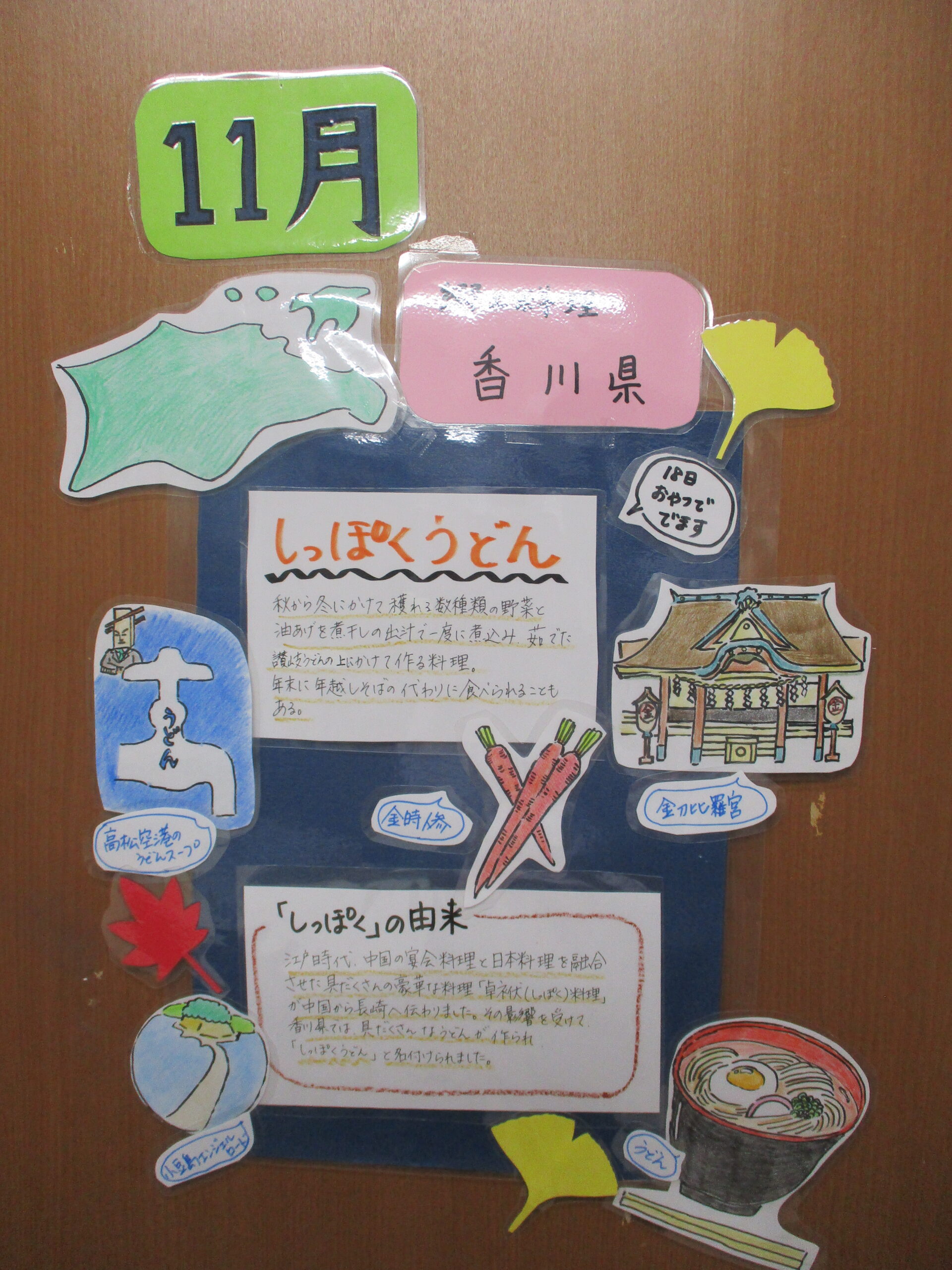今月の郷土料理は香川県の「しっぽくうどん」でした。