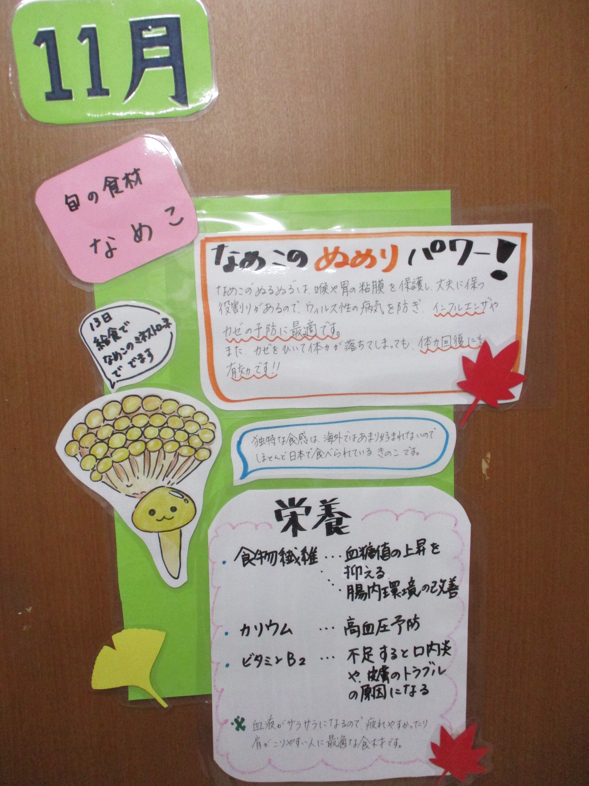なめこパワーで風邪をひかない元気な体をつくりましょう!