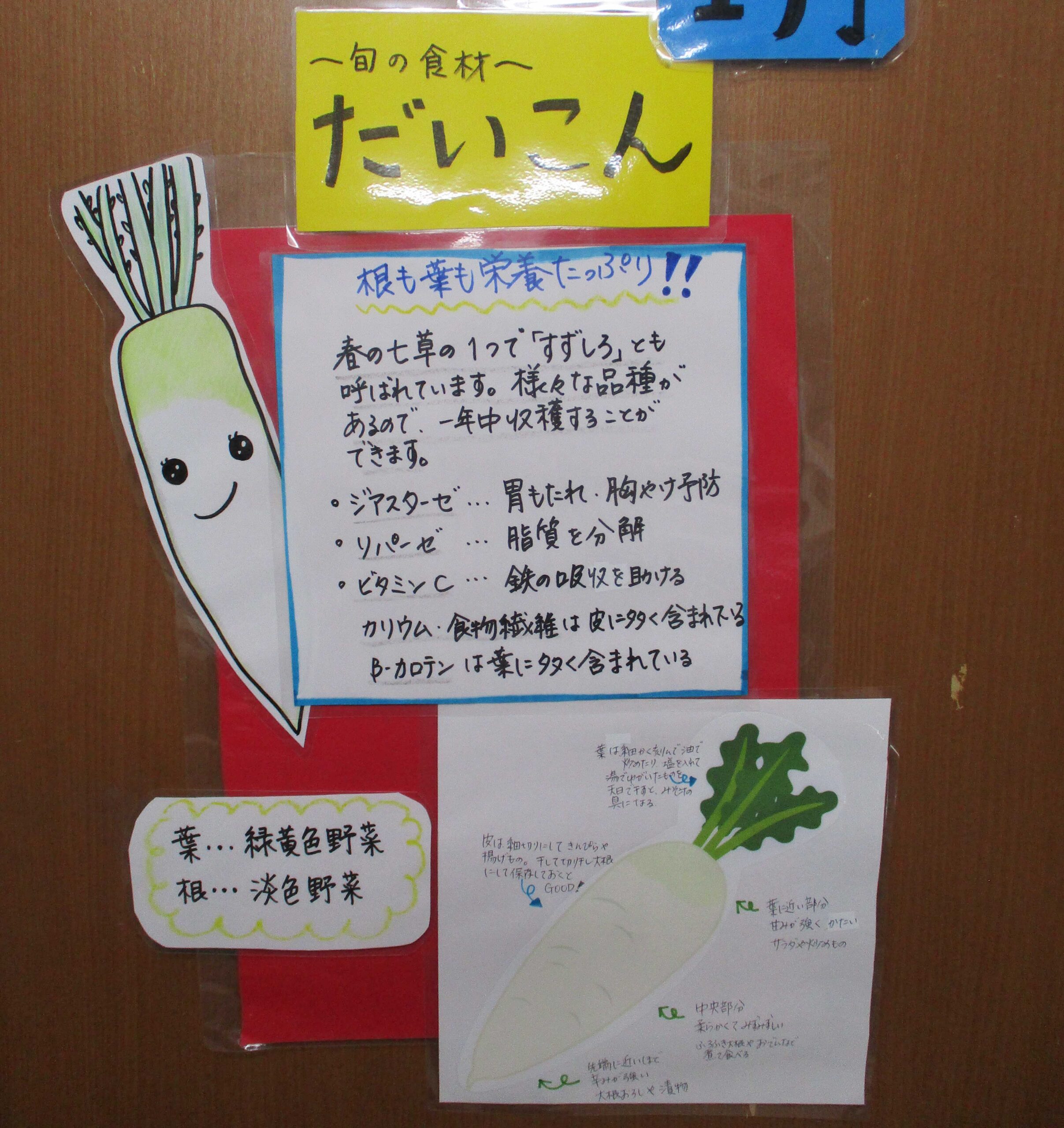 今月は、旬の食材の大根を使って大根もちをつくりました。