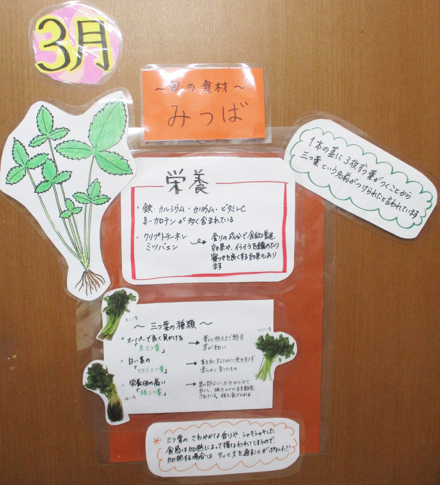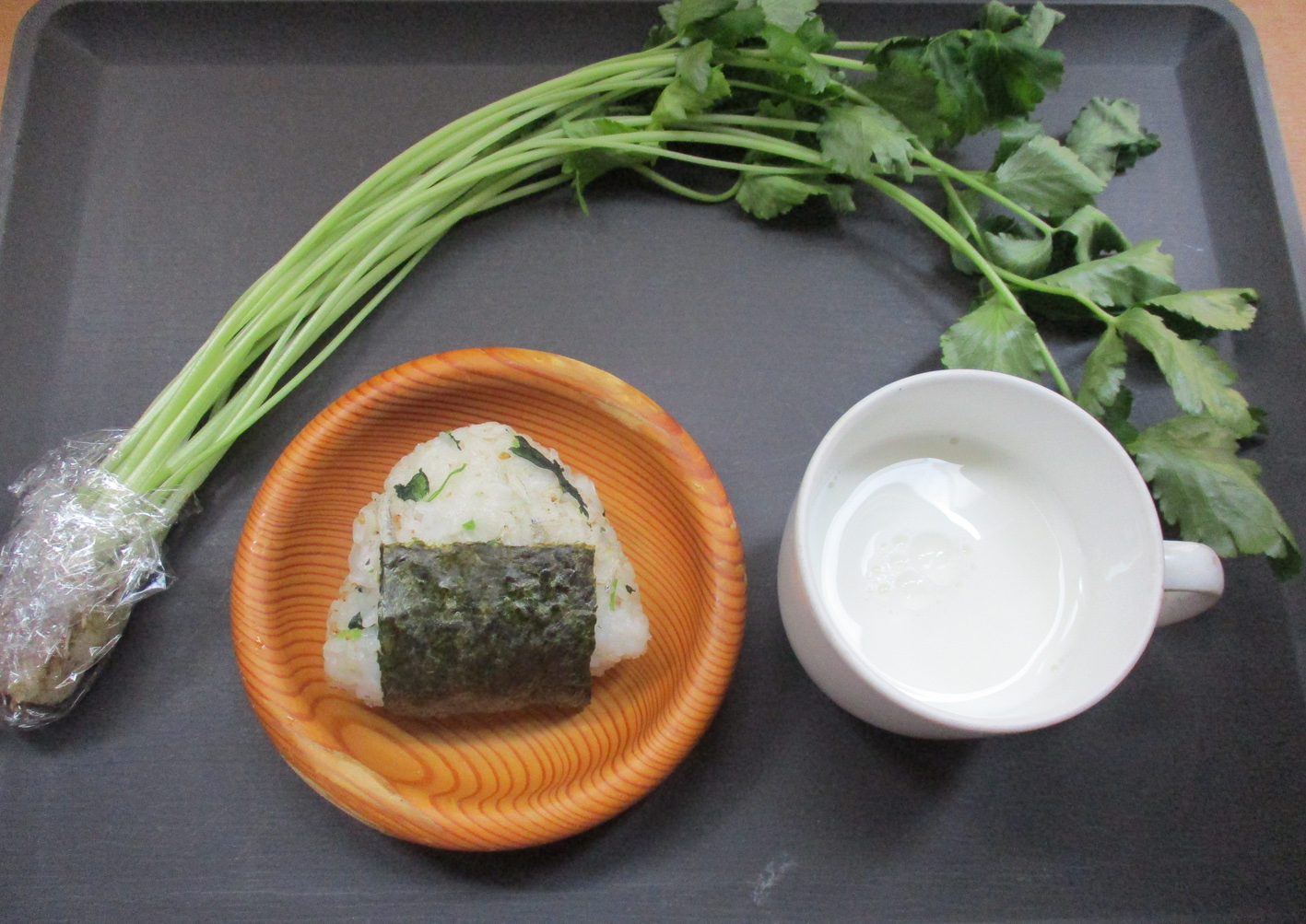 3月は、旬の食材の三つ葉を使っておにぎりを作りました!