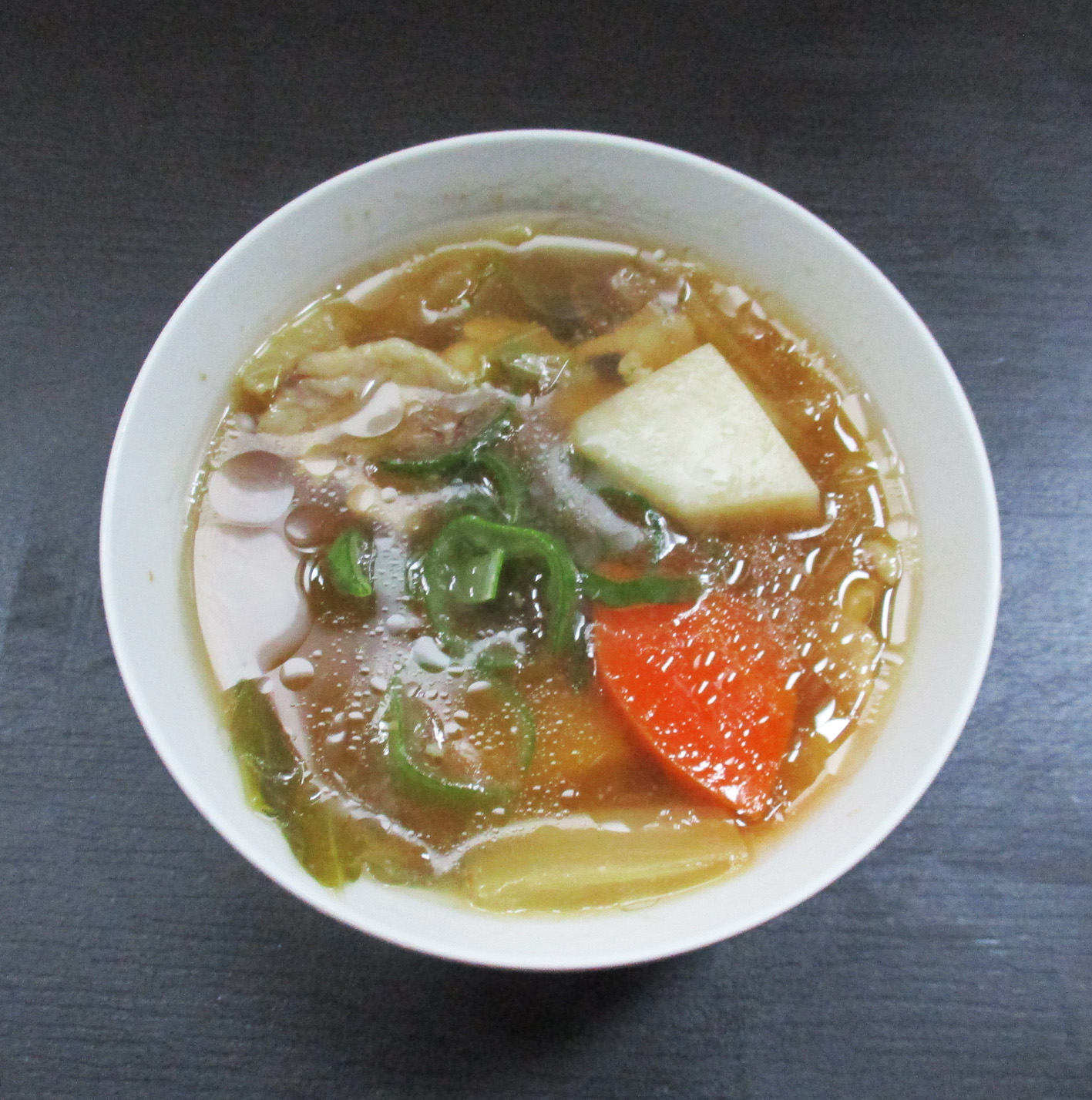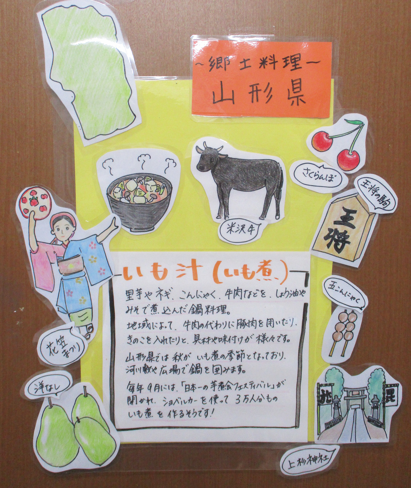 3月の郷土料理は山形県のいも汁でした。山形県では秋が芋煮の季節となっており、河川敷や広場で鍋を囲んで芋煮会をします。