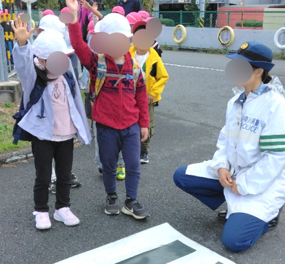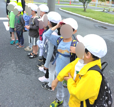「一人で渡る」ということにちょっぴりドキドキもしていましたが「一人でも出来るー!」と頑張る子ども達。今までの交通安全教室で学んだことを活かし「止まって 上げて 右左右」と行うことが出来ました。