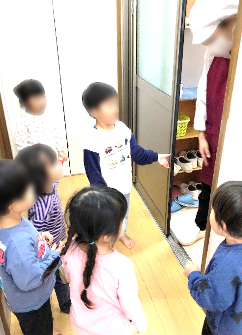 すると、「じゃあ、ここにおせんべい入れておこう!」と子どもたち(以前、おせんべいが入っていました)。