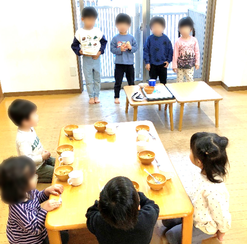 そして、楽しみにしていた4階でのおやつの時間♪(いただきますの挨拶中です)
