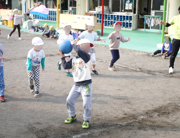 「絶対勝つぞ!」と気合い入れ、日々ドッジボール遊びを楽しんできたらいおん組さん。