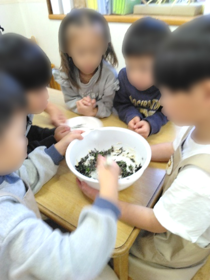 クッキング~ほうれん草とひじきのサラダ~<きりん・らいおん組>