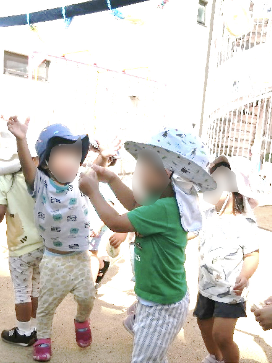 りす・ひよこ組さんと一緒にリズムをしようと、園庭に向かうと!!