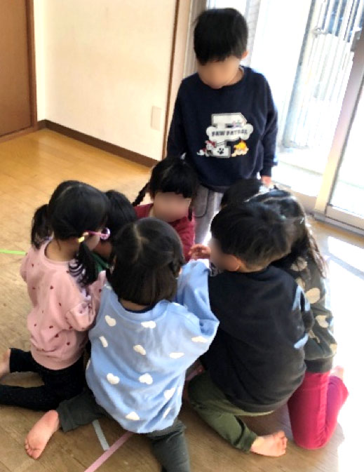 怪物ウヒアハとの「○○するな」のやりとりが楽しくて、みんなでイメージを膨らませ遊びが盛り上がり、今日の舞台に繋がったぱんだ組さんです。