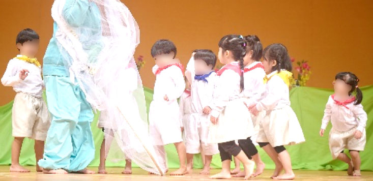 お友達やせんせいと一緒、楽しいね♪嬉しいね♪いつも保育園で楽しく過ごしている様子をステージでも見せてくれました。
